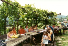 der Weinlaube hinter dem Schloss einfinden, um die entstandenen