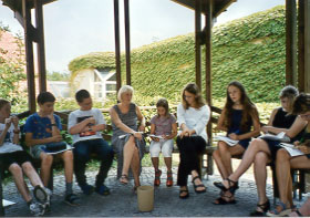 ist. Um halb zehn trafen wir uns im Innenhof, um die Themen unserer