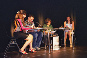 Die Lesung begann. Da gingen Ruben, Lilly, Emil und ich auf die