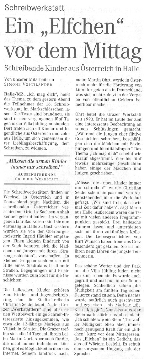Eine Werkstattwoche in Zusammenarbeit mit dem Kinder-Jugend-Schreibring e.V. Halle/Saale
