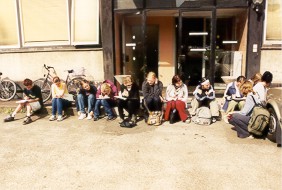 17:32: Eine größere Gruppe von Mädchen lenkt