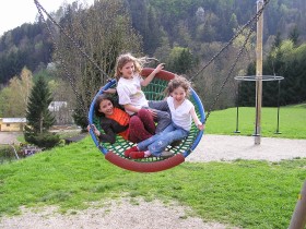 schaukeln wie die kleinen Kinder und klettern auf einem komischen